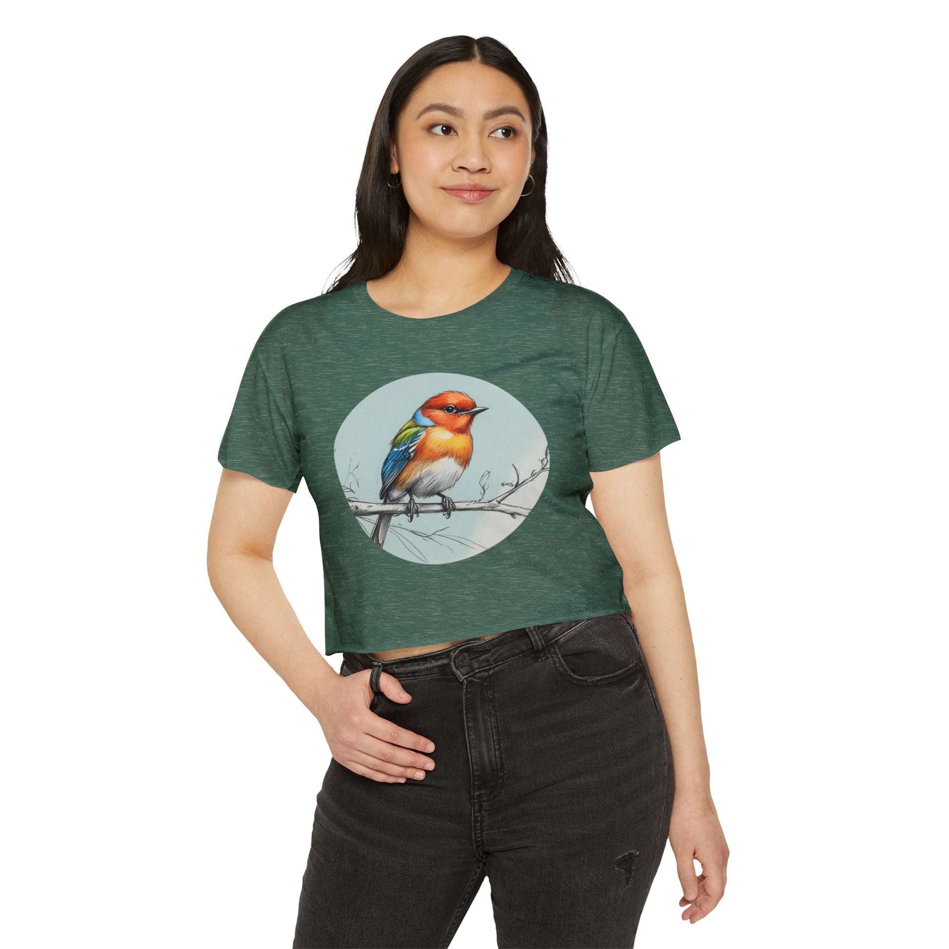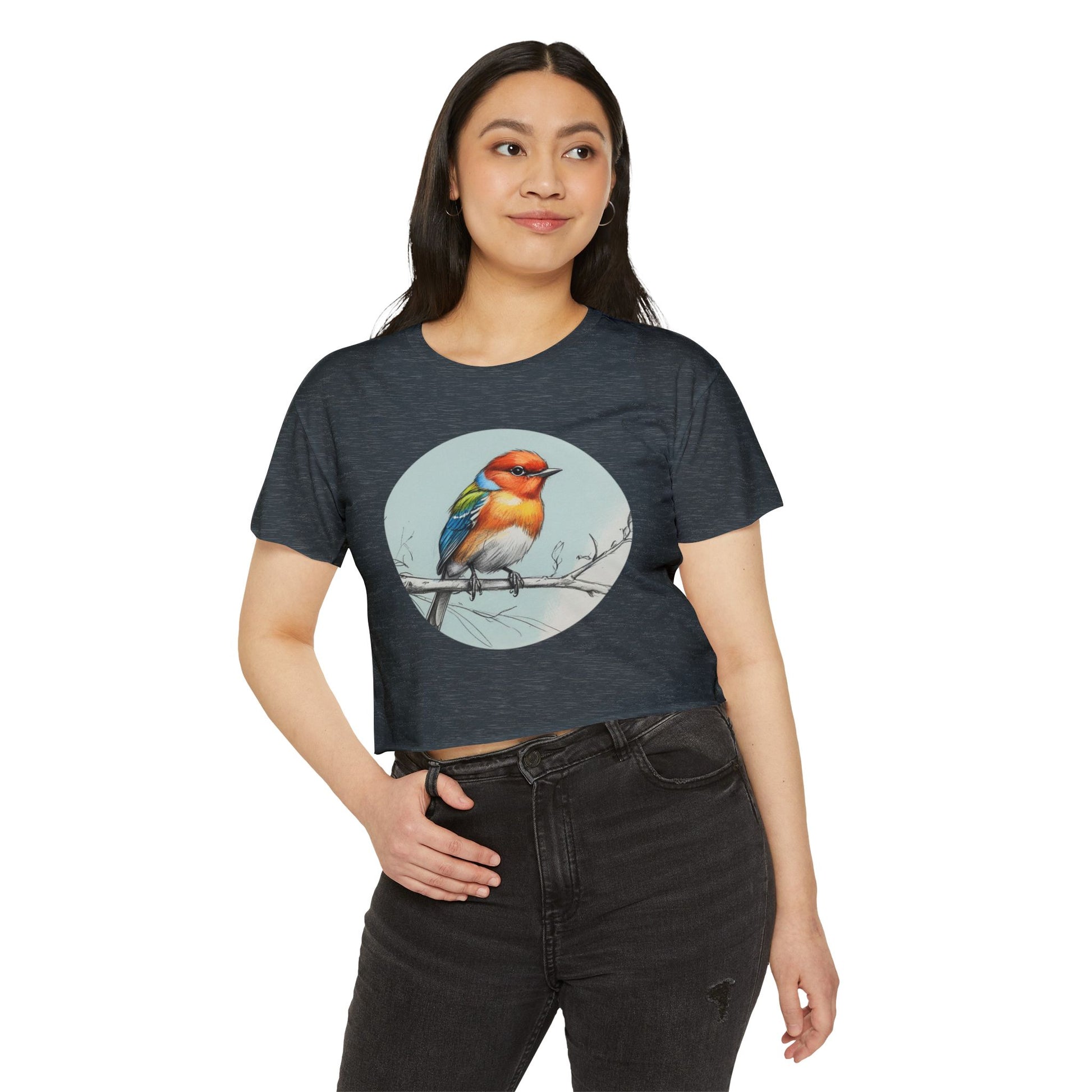 Colorful Bird Women's Crop Top, Stylish Festival Shirt, Summer Fashion Tee, Boho Top, Casual Wear, Nature Lover Gift