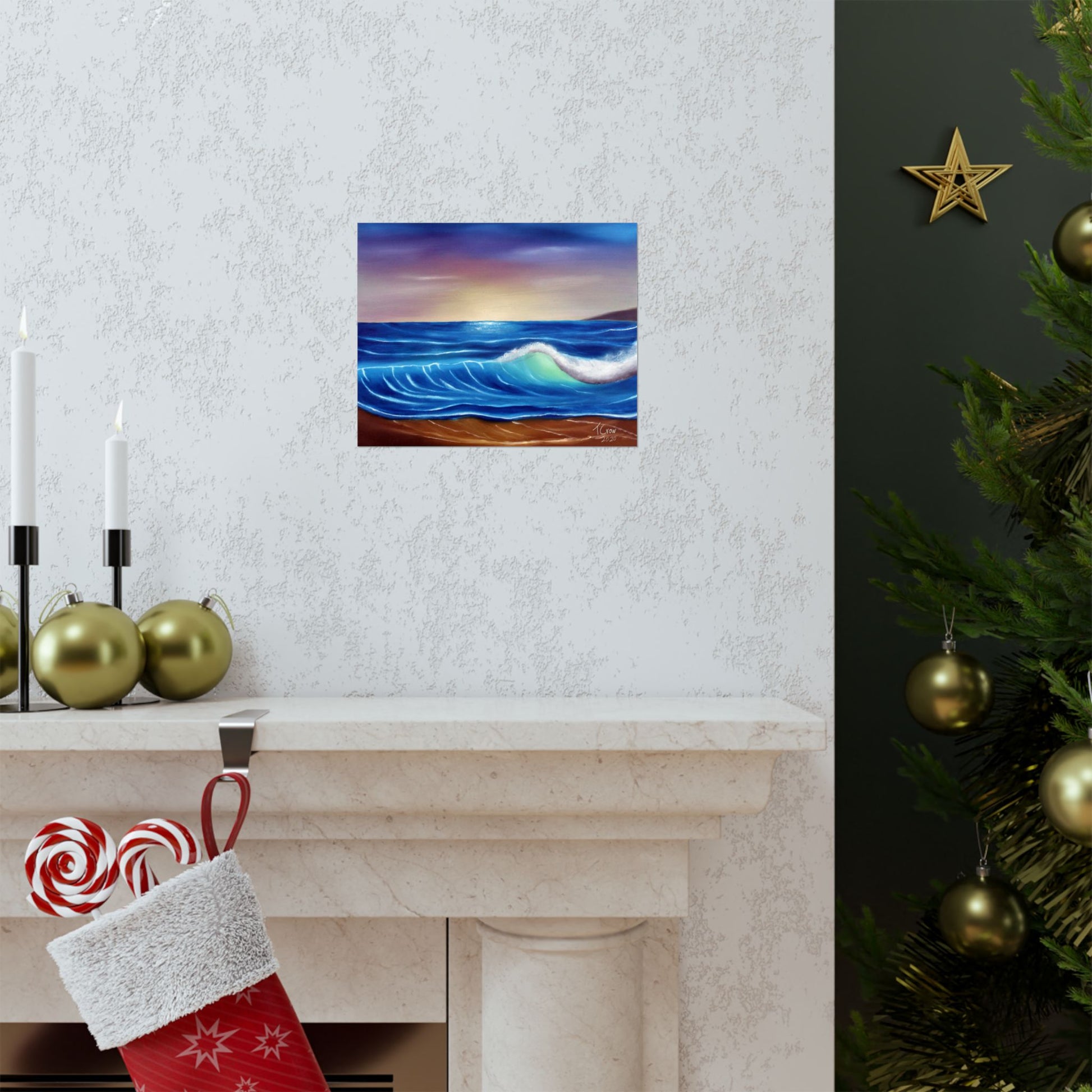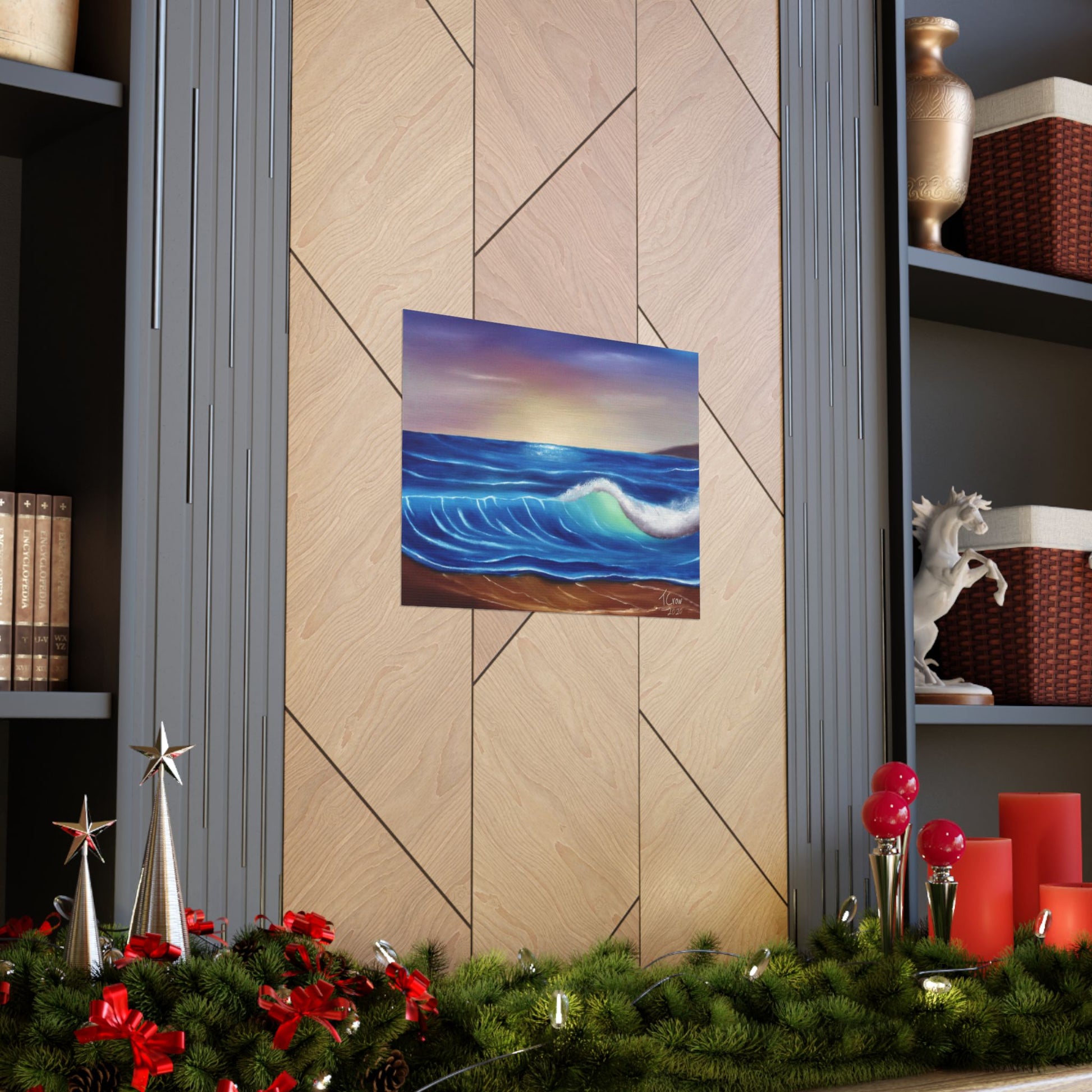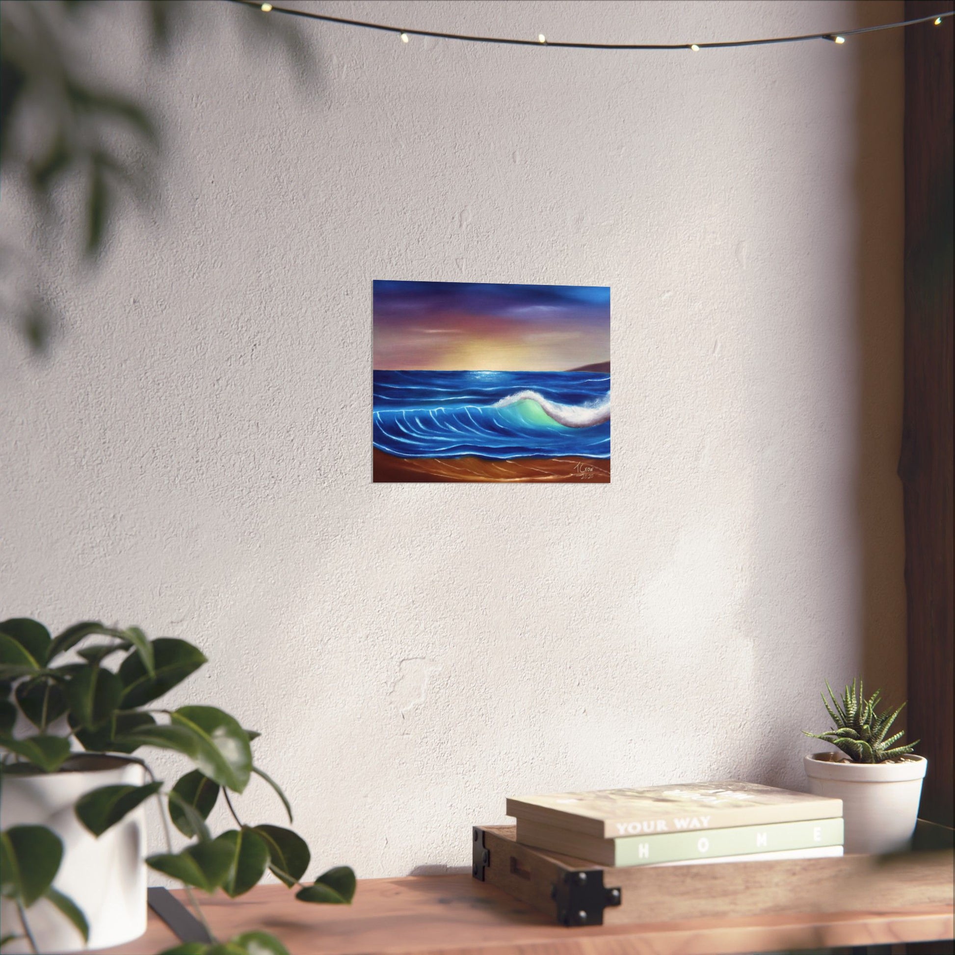 This matte horizontal poster brings the calm and power of the ocean into your space. Rich, giclée colors render the rolling wave, the translucent aqua curl, and the warm sandy shore with museum-grade quality. The matte finish softens glare and gives the print a gallery feel while archival paper keeps colors true for years. Hang it in a reading nook, beach house, or workspace to summon quiet tide-time moments and a steady, contemplative mood.