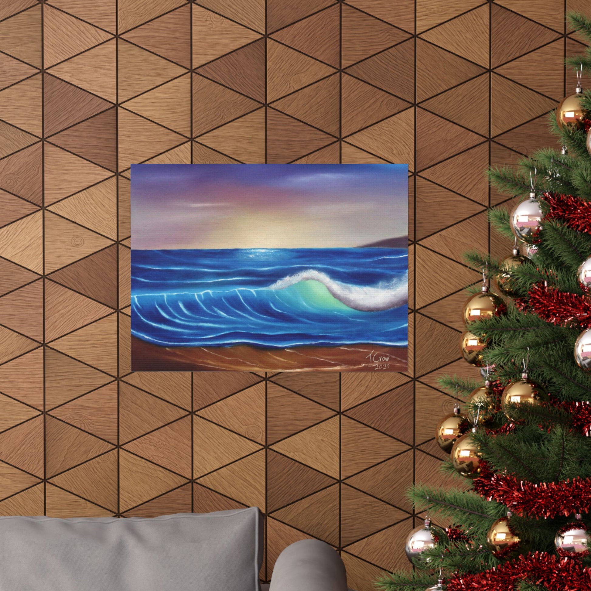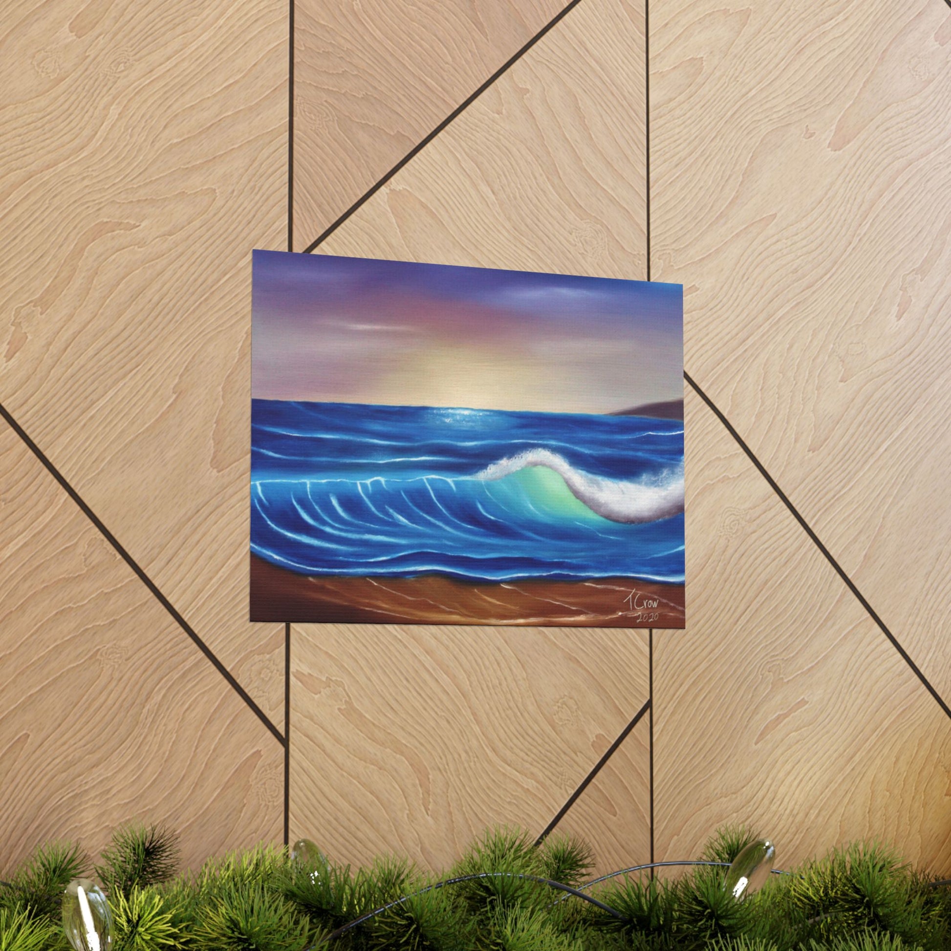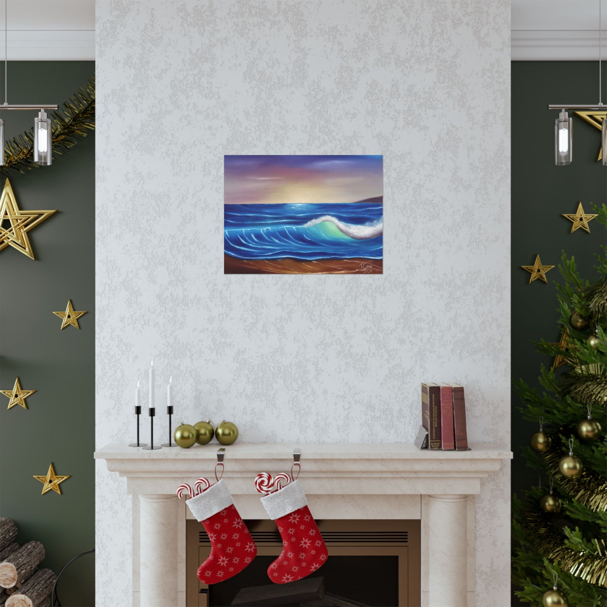This matte horizontal poster brings the calm and power of the ocean into your space. Rich, giclée colors render the rolling wave, the translucent aqua curl, and the warm sandy shore with museum-grade quality. The matte finish softens glare and gives the print a gallery feel while archival paper keeps colors true for years. Hang it in a reading nook, beach house, or workspace to summon quiet tide-time moments and a steady, contemplative mood.