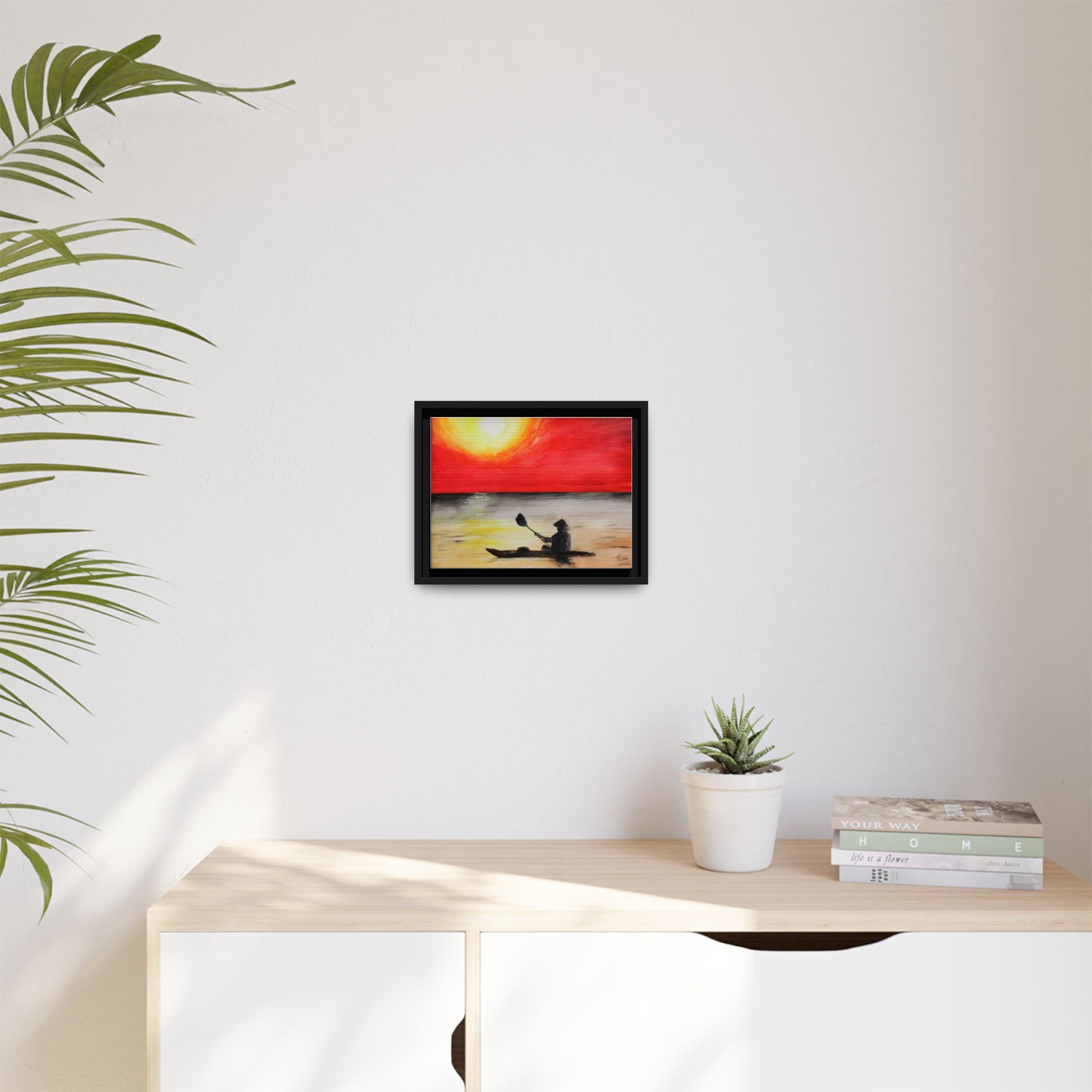 Sunset Kayaker Framed Canvas Art - Vibrant Wall Decor for Nature Lovers